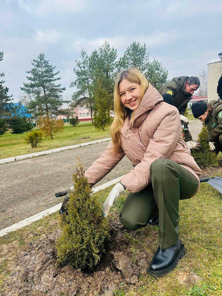 Сегодня территория санатория превратилась в настоящую зеленую стройплощадку. Члены Молодежного Совета Федерации профсоюзов Беларуси прибыли с благородной миссией — заложить аллею из 150 деревьев (колоновидные и шаровидные туи).