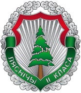 Нагрудные знаки различия Министерства лесного хозяйства «Ляснiчы». Исполняются в двух вариантах в зависимости от присвоенного класса и металла. Нагрудные знаки крепятся при помощи гайки. Высота нагрудных знаков – 45 миллиметров.
