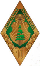 Нагрудный знак отличия Министерства лесного хозяйства «10 гадоў бездакорнай службы ў дзяржаўнай лясной ахове Рэспублікі Беларусь» представляет собой ромб зеленого цвета с каймой бронзового цвета, в верхней части которой размещена надпись «Дзяржаўная лясная ахова» зеленого цвета. В центре ромба в поле барочного щита бронзового цвета изображена ель зеленого цвета. Щит венчает Государственный герб Республики Беларусь бронзового цвета. Под щитом на кайме – листья дуба бронзового цвета, на которых расположен стилизованный свиток бронзового цвета с цифрами «10» того же цвета.
