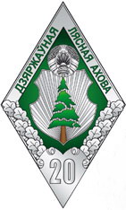 Нагрудный знак отличия Министерства лесного хозяйства «20 гадоў бездакорнай службы ў дзяржаўнай лясной ахове Рэспублікі Беларусь» представляет собой ромб зеленого цвета с каймой серебристого цвета, в верхней части которой размещена надпись «Дзяржаўная лясная ахова» зеленого цвета. В центре ромба в поле барочного щита серебристого цвета изображена ель зеленого цвета. Щит венчает Государственный герб Республики Беларусь серебристого цвета. Под щитом на кайме – листья дуба серебристого цвета, на которых расположен стилизованный свиток серебристого цвета с цифрами «20» того же цвета.