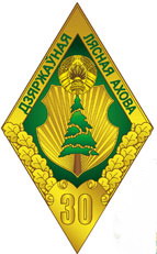 Нагрудный знак отличия Министерства лесного хозяйства «30 гадоў бездакорнай службы ў дзяржаўнай лясной ахове Рэспублікі Беларусь» представляет собой ромб зеленого цвета с каймой золотистого цвета, в верхней части которой размещена надпись «Дзяржаўная лясная ахова» зеленого цвета. В центре ромба в поле барочного щита золотистого цвета изображена ель зеленого цвета. Щит венчает Государственный герб Республики Беларусь золотистого цвета. Под щитом на кайме – листья дуба золотистого цвета, на которых расположен стилизованный свиток золотистого цвета с цифрами «30» того же цвета.